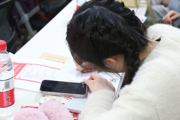 在“福启新岁”环节,老师们的新年寄语、到牛津大学交换的同学和24届毕业生的视频祝福让现场洋溢着温情,同学们写下新年祝福,期待着晚会结束时的惊喜传递。